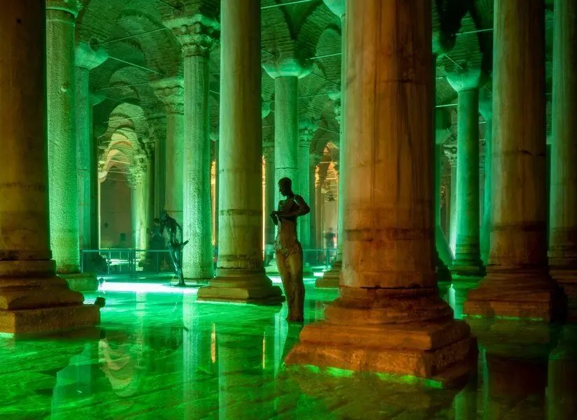 In the past, it was also known as the Basilica Cistern because of the Stoa Basilica on the cistern and the Basilica Palace because of the columns coming out of the water. The most mysterious artifact in the Basilica Cistern, which is 140 meters long and 70 meters wide, is the Medusa Head. The statue, located under the two columns located in the northwest of the cistern, is one of the most important works of the Roman Period, but how it got here is unknown. The modern sculptures added to the Basilica Cistern take the atmosphere of the cistern to a whole new dimension.
